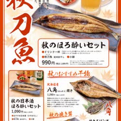 ひやおろしとともに秋刀魚を楽しめる「秋の日本酒ほろ酔いセット1,199円」...